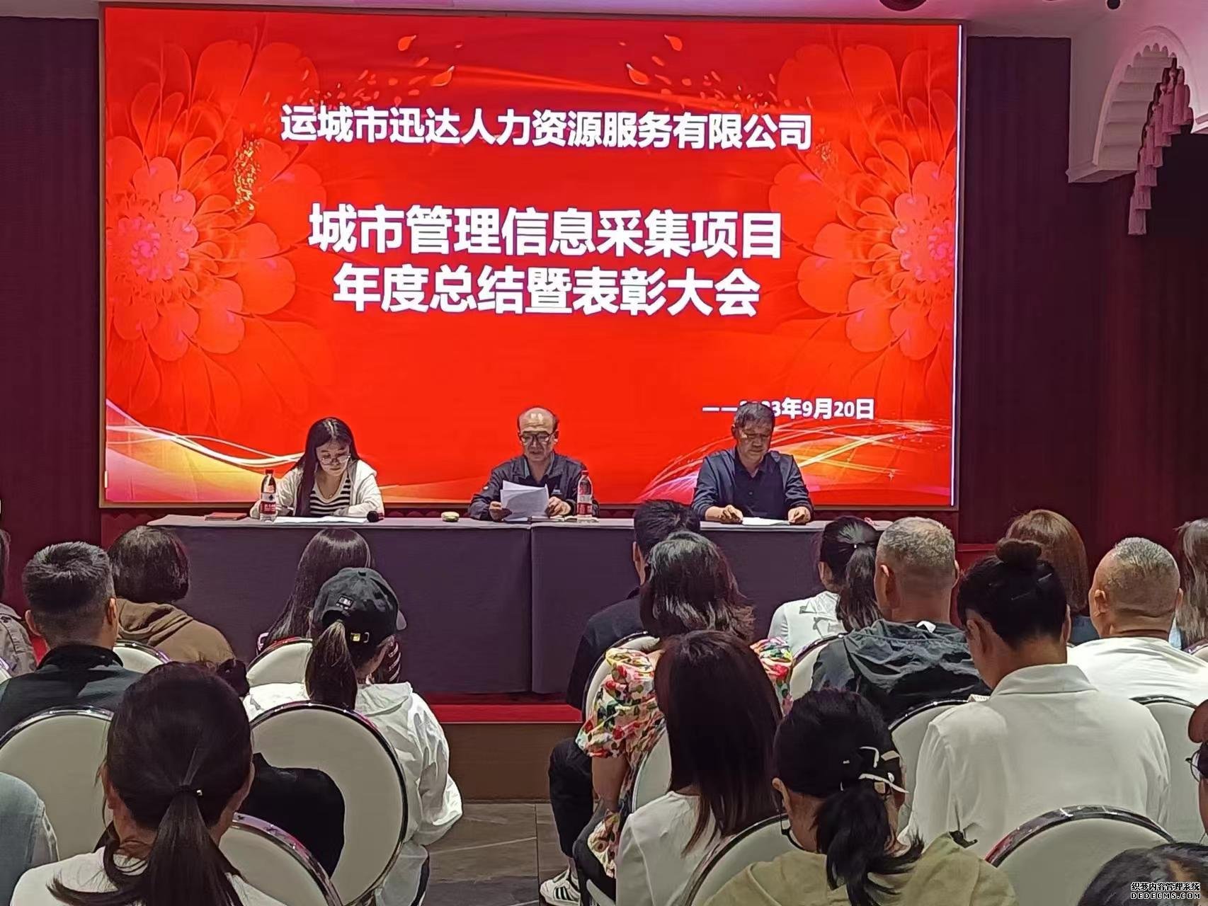 2023年9月20日,運城市迅達人力資源服務有限公司召開了城市管理信息采集項目年度總結暨表彰大會。會議上,項目經理趙長生對過去一年運城市城市管理信息采集項目部的工作進行了總結,對涌現出的先進個人和優秀代表進行表彰。迅達公司副總黃云久參加會議。