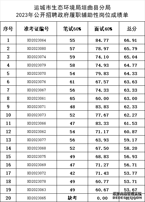 一、運(yùn)城市垣曲縣2023年政府履職輔助性服務(wù)崗位考試已如期進(jìn)行,現(xiàn)成績公示如下: