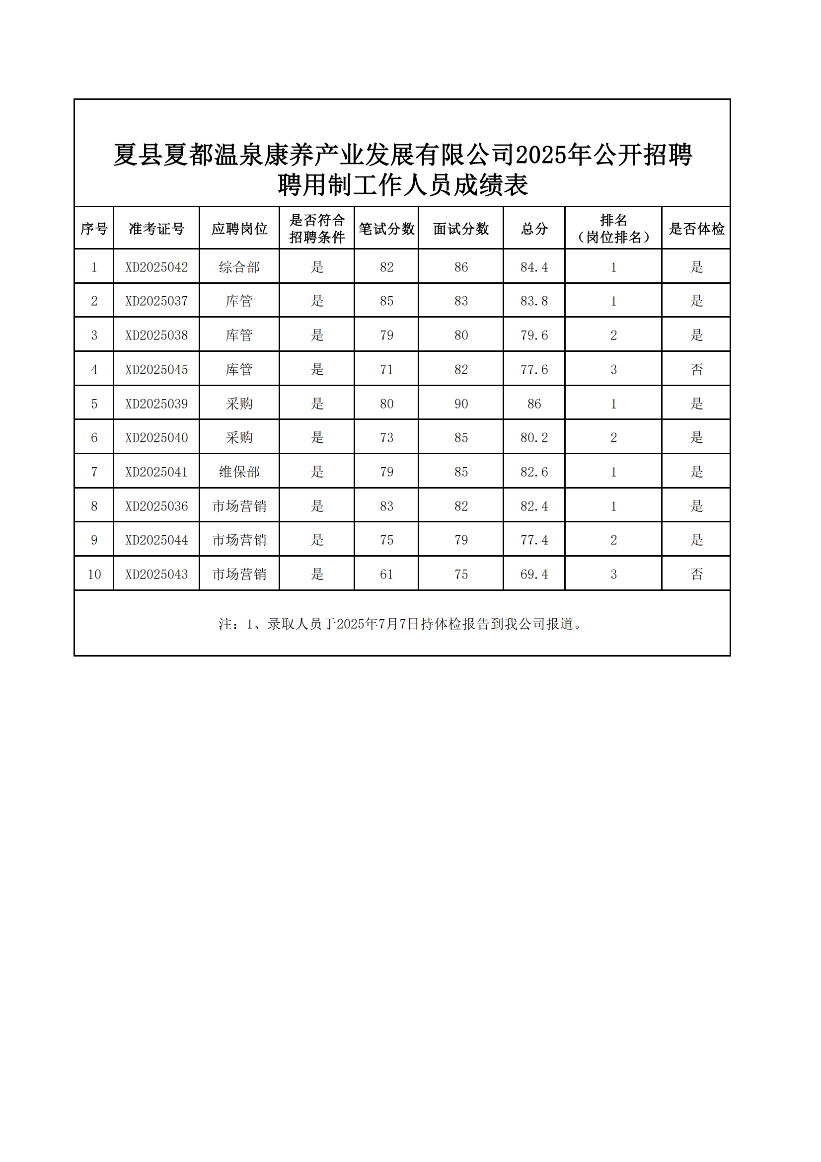 【成績公示】夏縣夏都溫泉康養(yǎng)產(chǎn)業(yè)發(fā)展有限公司